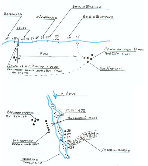 - Выходы из каньонов приграничного Аруна крайне тяжелые. Требуют огромных физических затрат и использования труда носильщиков.