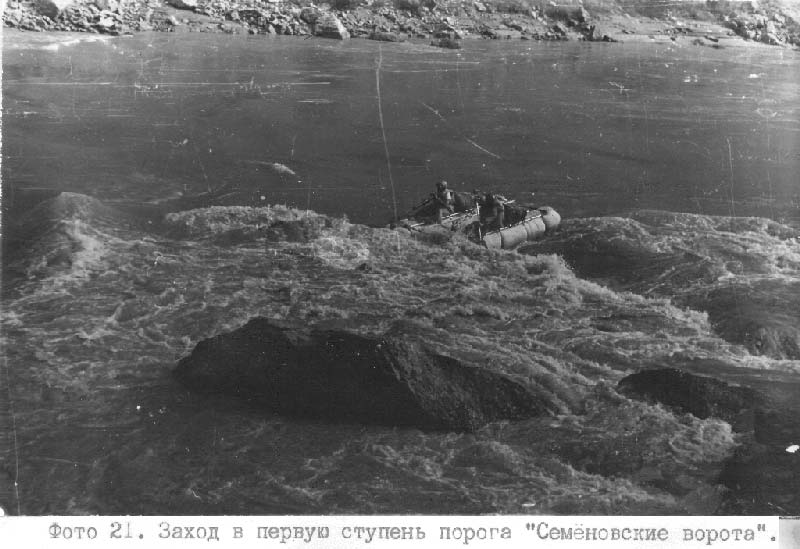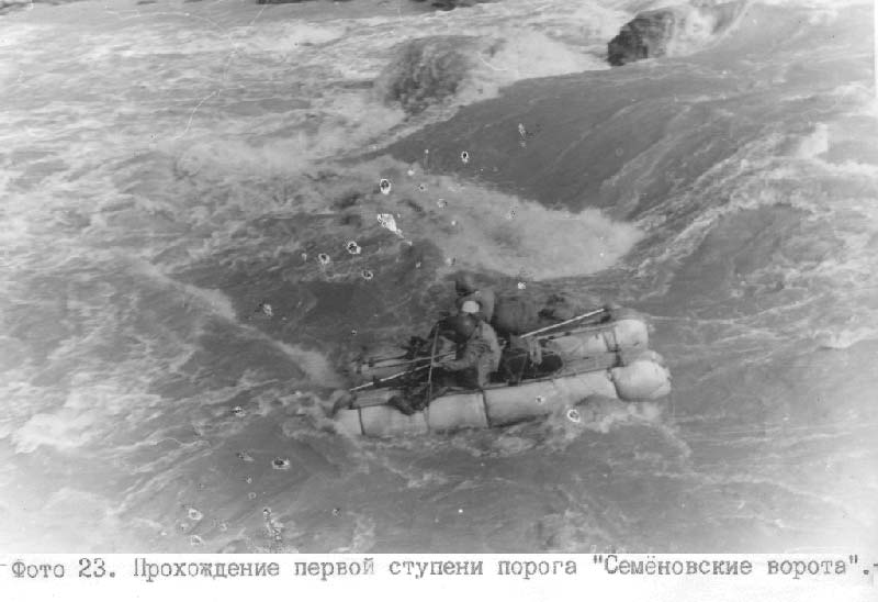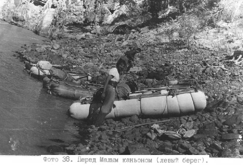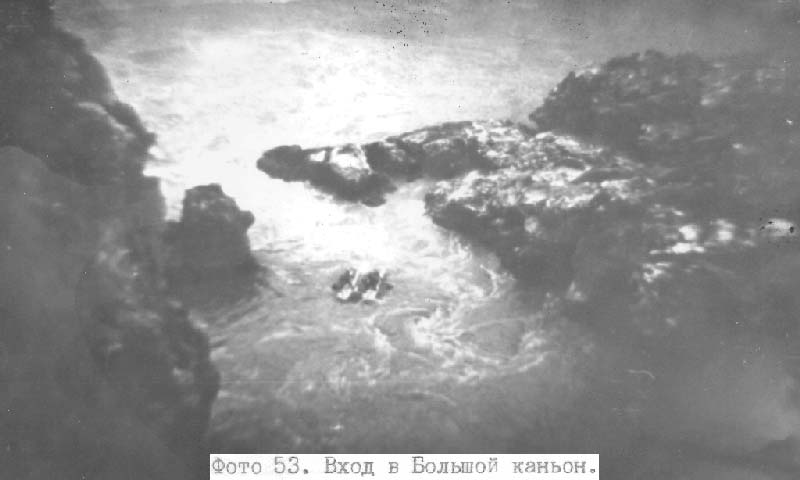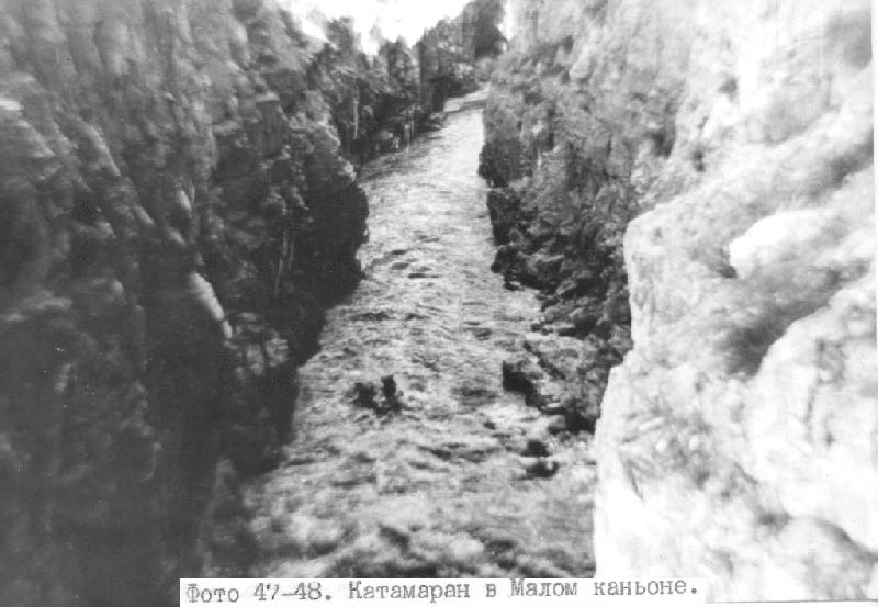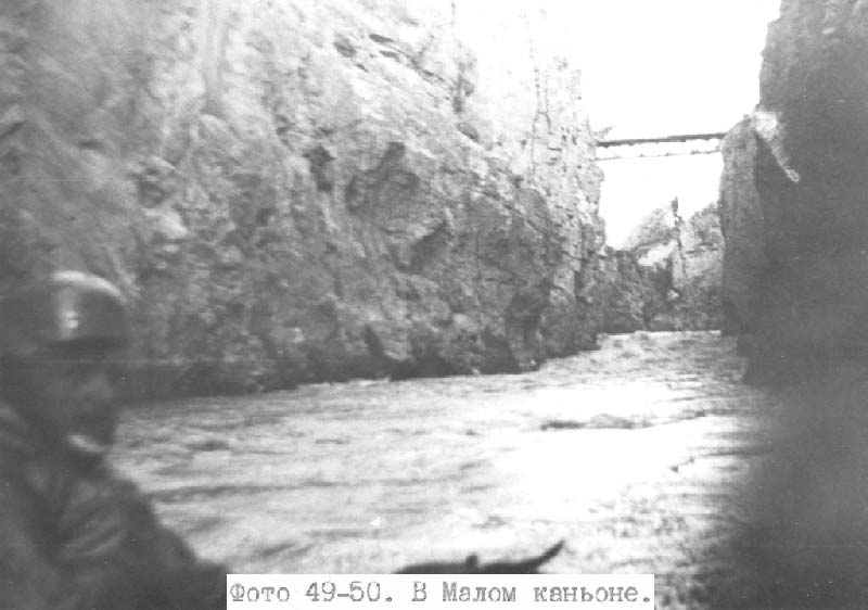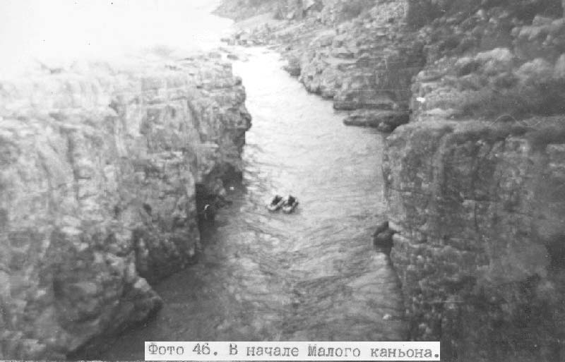 Порог – пр.54: на выходе из каньона сужение 6-8м. Правый берег – бом, левый – крупные камни. В сужении слив 1,5м. За каньоном 3-4 км относительно спокойно.