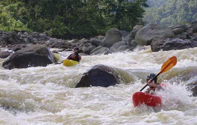 2 декабря. Ночь накануне вылета решил не спать, после бессонной ночи легче будет адаптироваться к местному времени. Самолет вылетает в 7.15 из Шарика и летит по маршруту Москва – Париж - Мехико – Сан-Хосе. Несмотря на все предпринятые накануне усилия по избежанию гемороя в аэропорту, такие как бронирование места для перевозки каяка и прочего, все было напрасно! Гемор был! Даже и не знаю, имеет ли смысл предпринимать что-либо, а именно бронировать негабарит, звонить в кассы и узнавать правила провоза негабаритного багажа, если в действительности все решает какая-то мандавошка на приемке, которая по моим наблюдениям не то, что соображать не может, а даже читать. В итоге плачу в кассу 65 евро за негабарит (каяк), а когда возвращаюсь с оплаченной квитанцией, эта стерва с невинной улыбкой сообщает мне, что столько же я должен заплатить за весло! Твою мать! За пять минут до этого я простился с провожающим меня товарищем и отправил с ним разборное весло, которое взял на тот случай, если за неразборное весло с меня захотят денег! А ведь пять минут назад это невинное создание сказало мне, что платить надо только за каяк! Звоню товарищу, который уже доехал почти до кольцевой, и жду весла. Предупреждаю приемщицу – что сейчас мне привезут разборное весло и я его засуну в чехол с каяком - и иду встречаться с товарищем. И когда я прихожу, то вижу, что весь мой багаж уже отправили! Ну что тут можно сказать… говорить с этими уродами просто бесполезно! Напоследок еще выясняется, что багаж оформили только до Мехико. В ответ на все претензии только разводят руками и прячут виновато глаза. Иду с веслом в самолет и лечу в Париж. В Париже меня, естественно, посылают сдавать весло в багаж, я пропускаю свой рейс до Мехико и имею перспективу ночевки в аэропорту и один про…анный день. И тут происходит чудо, а именно полное понимание со стороны работников аэропорта. В итоге сдаю весло в багаж, регистрирую весь багаж до Сан-Хосе и вылетаю следующим рейсом. Ну почему у них все для человека, а у нас все против! Вечный вопрос с заранее известным ответом – патамучта! Попутно выясняю, что за каяк, а уж тем более весло, платить было не нужно…Полет был довольно нудным, жопа окаменела, несмотря на все упражнения дальнобойщика. Короткая пересадка в Мехико и через два с половиной часа я уже в Сан-Хосе. Время около 11 вечера по местному. Тут выясняется еще одна интересная деталь, моего багажа-то нет! Заполняю форму, мне обещают доставить багаж по указанному адресу и выхожу из аэропорта налегке. Но вот, наконец-то, белая полоса, меня встречают! Ханс послал за мной такси! Определяю встречающего меня аборигена по веслу, точнее, его обломку, на котором маркером написано мое имя. А так как выхожу я из аэропорта последним, то, опираясь на дедукцию, делаю вывод, что встречают именно меня. Сажусь в машину и практически сразу проваливаюсь в сон. Не знаю, сколько мы ехали, просыпаюсь только на базе – где предстоит прожить несколько дней. На встречу выходит заспанный Ханс и показывает комнату, где мне спать – все разговоры завтра. Как только голова касается подушки, моментально засыпаю. На утро знакомлюсь со всей честной компанией из семи добропорядочных бюргеров. Рассказываю о всех своих неприятностях. В итоге получаю от Штефана необходимое для сплава барахло и шорты с рубашкой для жизни в тропиках. На