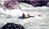 - После моста через Арун еще два порога, которые можно оценить Т-, и немного выше п. Chandanpur река совсем успокаивается. Описывать коммерческий маршрут международной классификации (4-) не имеет смысла. Надо сказать, что ущелье очень красивое, дров и стоянок много, поселки высоко от реки. На некоторых нижних порогах макало с головой, но все они достаточно безопасны, т.к. между ними спокойные участки.